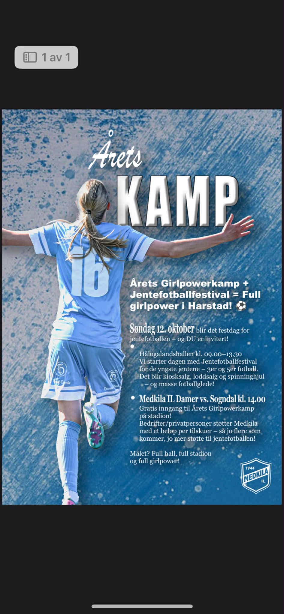 Søndag 12. oktober kl. 14.00 spiller Medkila damelag mot Sogndal – og vi inviterer hele Harstad til en gratis folkefest på stadion! I den anledning ønsker vi å gjøre dette til en kamp med ekstra kraft: «Årets kamp».